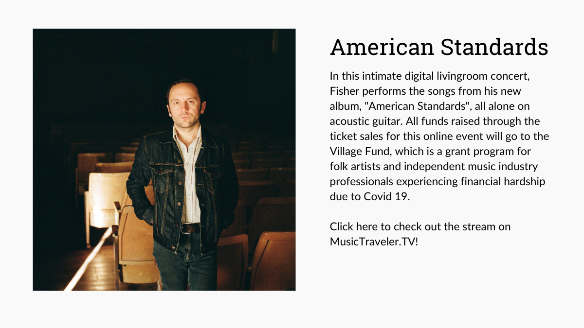 The Missouri native’s impressive discography roughly corresponds to the number of years he’s spent abroad as a fixture in Vienna, Austria’s Indie music scene. Fisher has cancelled over one hundred concerts in the last year due to the pandemic and anxiously awaits the possibility to perform live again. In the meantime, he has been releasing live streams, including a MusicTraveler.TV fundraiser for The Village Fund, which is a grant program for folk artists experiencing financial hardship, administered by Folk Alliance International.