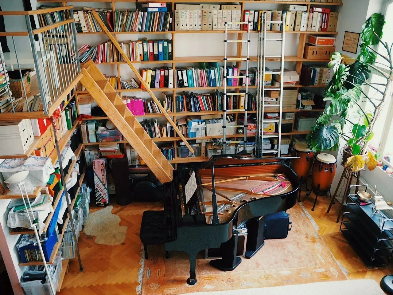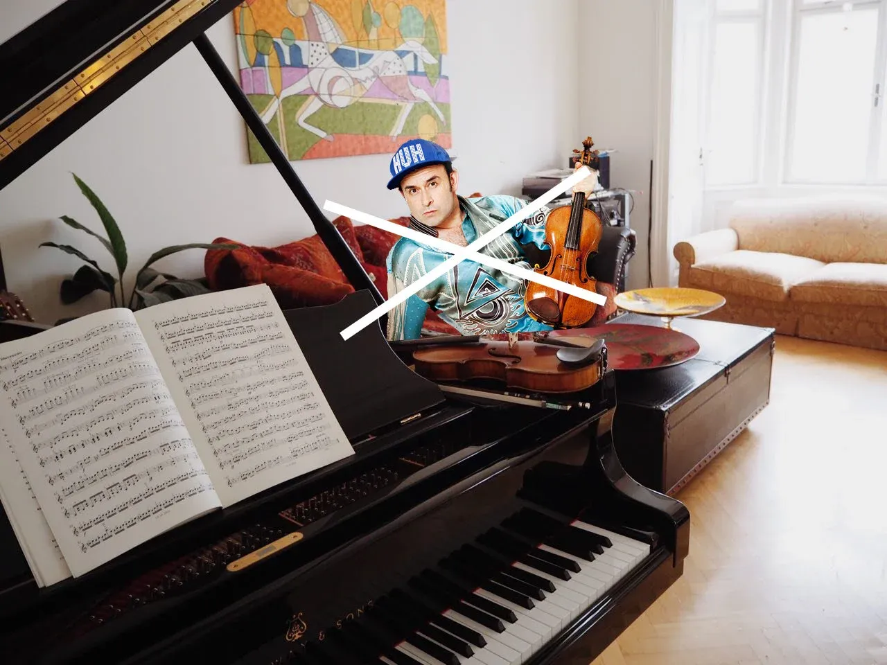 Prepare the instruments for a photo session If your room has a piano, open the lid for both the top and keyboard. A cello, double bass or violin? Take them out of their cases and show them off!